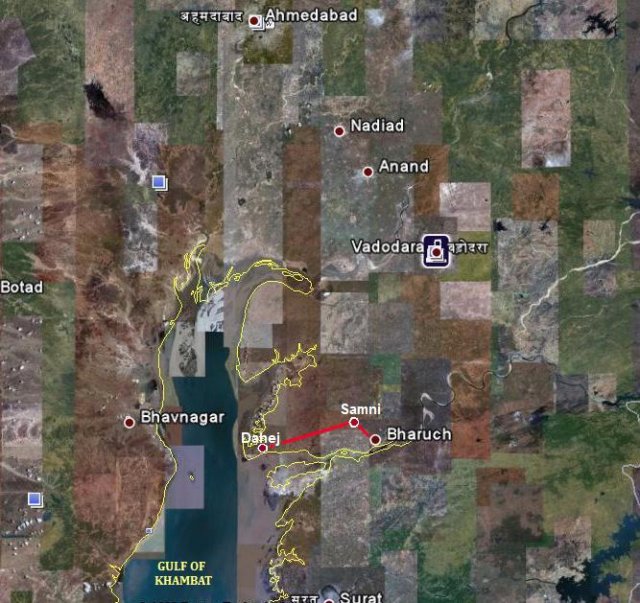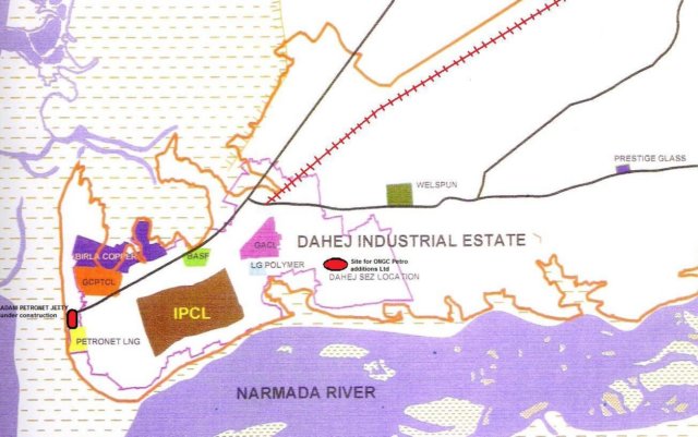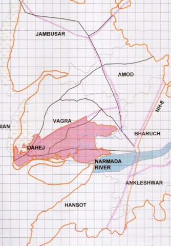 Maps of the Dahej Bharuch line and the various facilities/industries coming up in the region